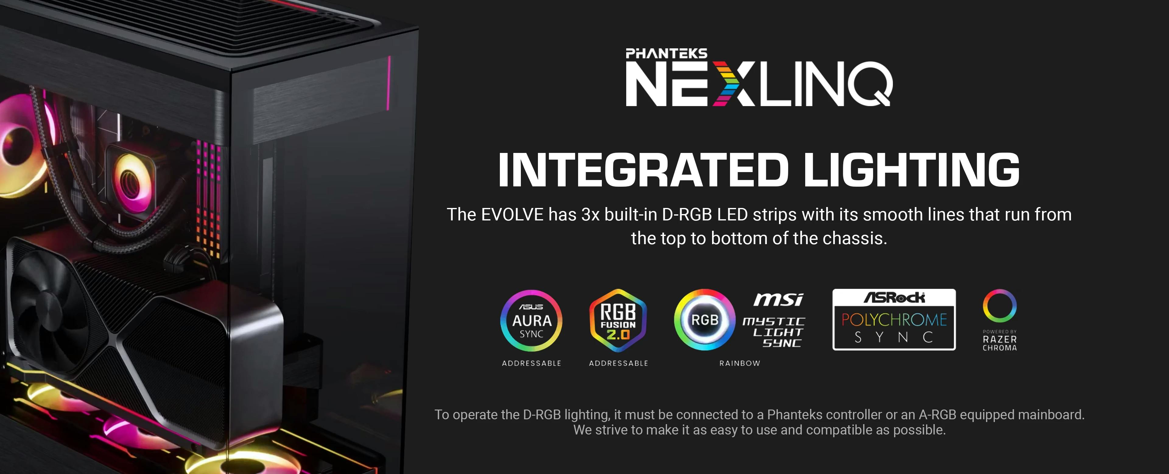 Choose the ideal form for your setup with the compact EVOLVE S2 or the full tower EVOLVE X2. The EVOLVE S2 delivers superior cooling in a space-conscious design for those looking for a rig with a smaller footprint without compromise. The EVOLVE X2 offers the same superior cooling performance in a taller chassis for an aesthetic that exhibits power and performance.
